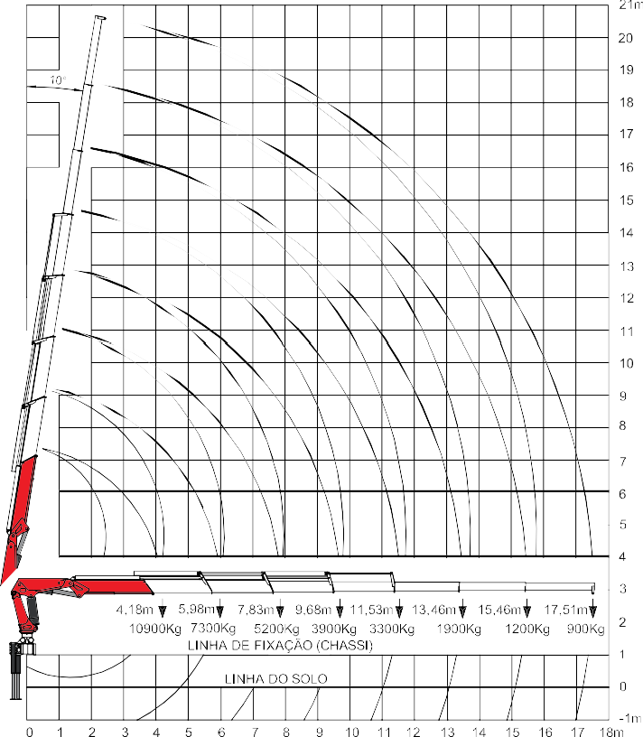 | Alcance máximo horizontal hidráulico + Manual: | 17,51m |